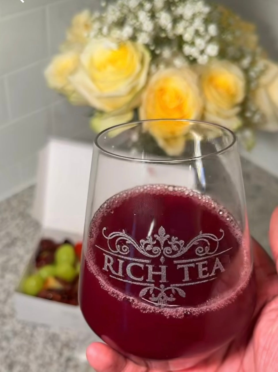 Rich Tea Luxury's chic and bold custom glasses provides the Rich Essentials for you Rich Tea Beverages